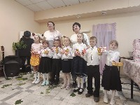 Ребята поздравили женщин, исполнили песни и показали танец с зонтиками.