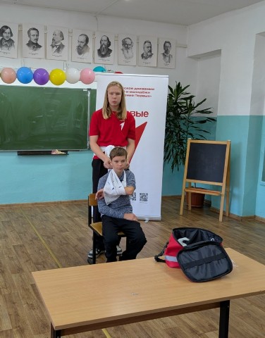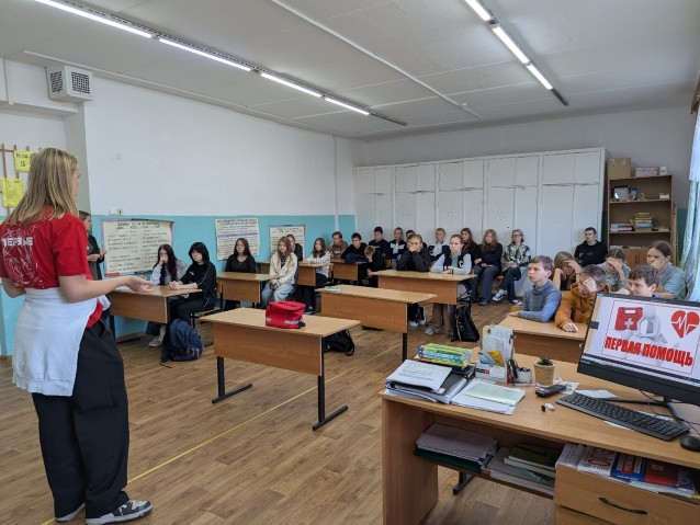 Лидер Совета Первых Георгий Манюшин провёл для обучающихся 7, 8, 10 классов игру–практикум «Час до приезда скорой».
