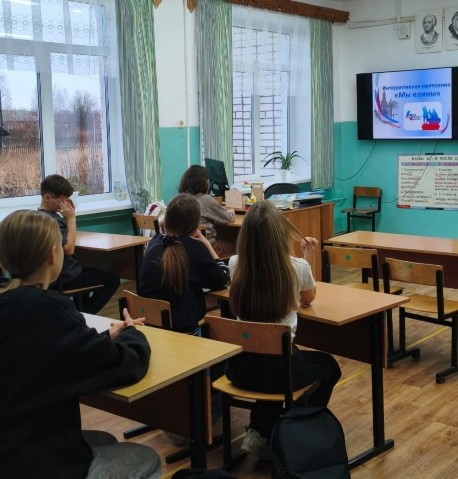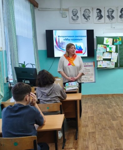 Учащиеся 7 класса совместно с советником по воспитанию Юлией Александровной Карпиной сыграли в интерактивную викторину «Мы едины». Ребята вспомнили памятные даты и исторические события нашей страны, назвали пословицы о единстве и ответили на блиц–вопросы викторины.