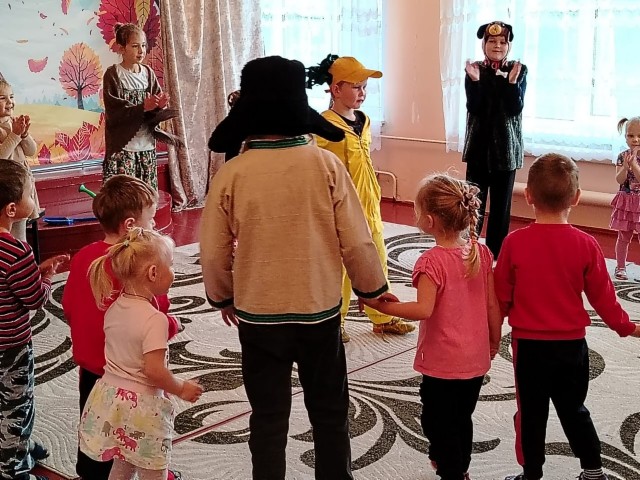 Малыши увидели реальные образы героев сказки! Дети–артисты активно и с большим желанием сыграли свои выбранные роли, вовлекая малышей в игровые моменты и вызывая у них положительные эмоции.