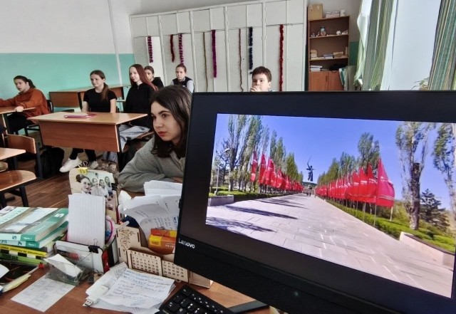 Советник по воспитанию Юлия Александровна Карпина рассказала учащимся 5 и 7 классов об этом важном событии в истории Великой Победы нашей страны и провела виртуальную экскурсию по мемориальному комплексу «Мамаев Курган».