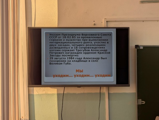 Надежда Ивановна познакомила ребят с презентацией о наших земляках, героях Афганской войны – Александре Трегубове и Михаиле Бобровском!