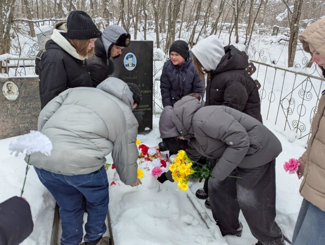 По инициативе советника по воспитанию школьники посетили могилу героя–интернационалиста Александра Трегубова, почистили снег и торжественно возложили цветы.