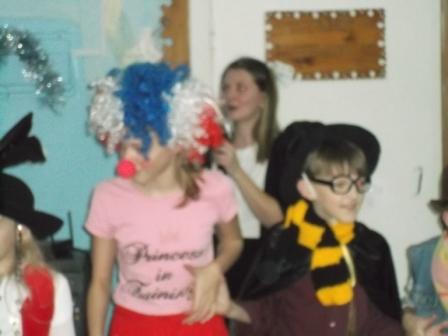 В итоге самое костюмированное шоу из года в год представляют учащиеся начальной школы. Снегурочка (Чивина Лиза, 8 класс) и Дед Мороз (Перхин Саша, 8 класс), Баба-Яга (Савиных Лиза, 7 класс), Петушок (Алёшина Оля, 7 класс), а также клоуны (Волкова Люба и Могучая Настя, 7 класс) развлекали детишек хороводами, стихами, песнями. Да и сами ребята подготовили немало праздничных номеров - песен, стихов, танцев. Молодцы!